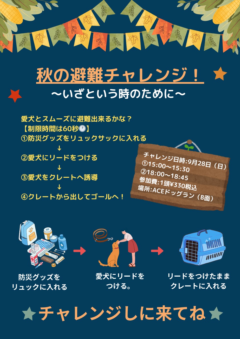 【秋の避難チャレンジ】 9月1日は防災の日👐 防災月にちなんで、 愛犬とチャレンジできる内容を考えま…