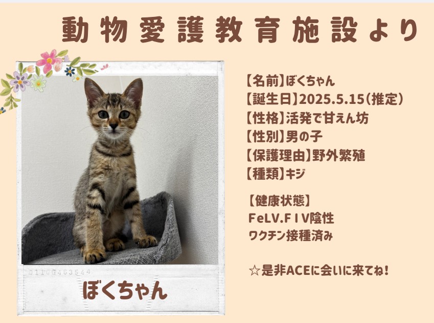 8月初旬に保護 とっても活発な男の子♡ 保護当初は シャーシャー言っていましたが 攻撃性はなく ナデ…